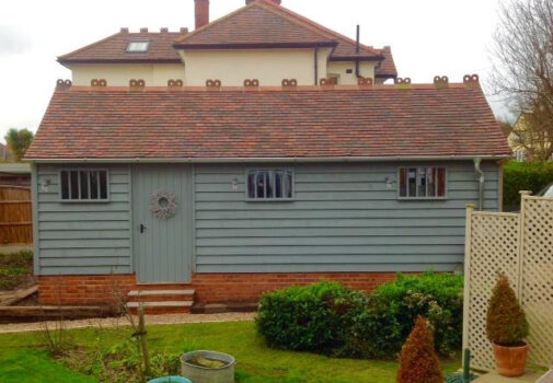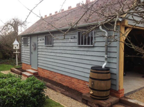 The weather boarding has been painted and the addition of aluminium guttering really finishes this building beautifully.