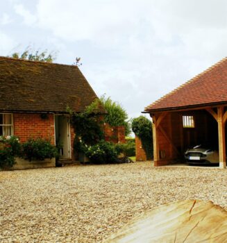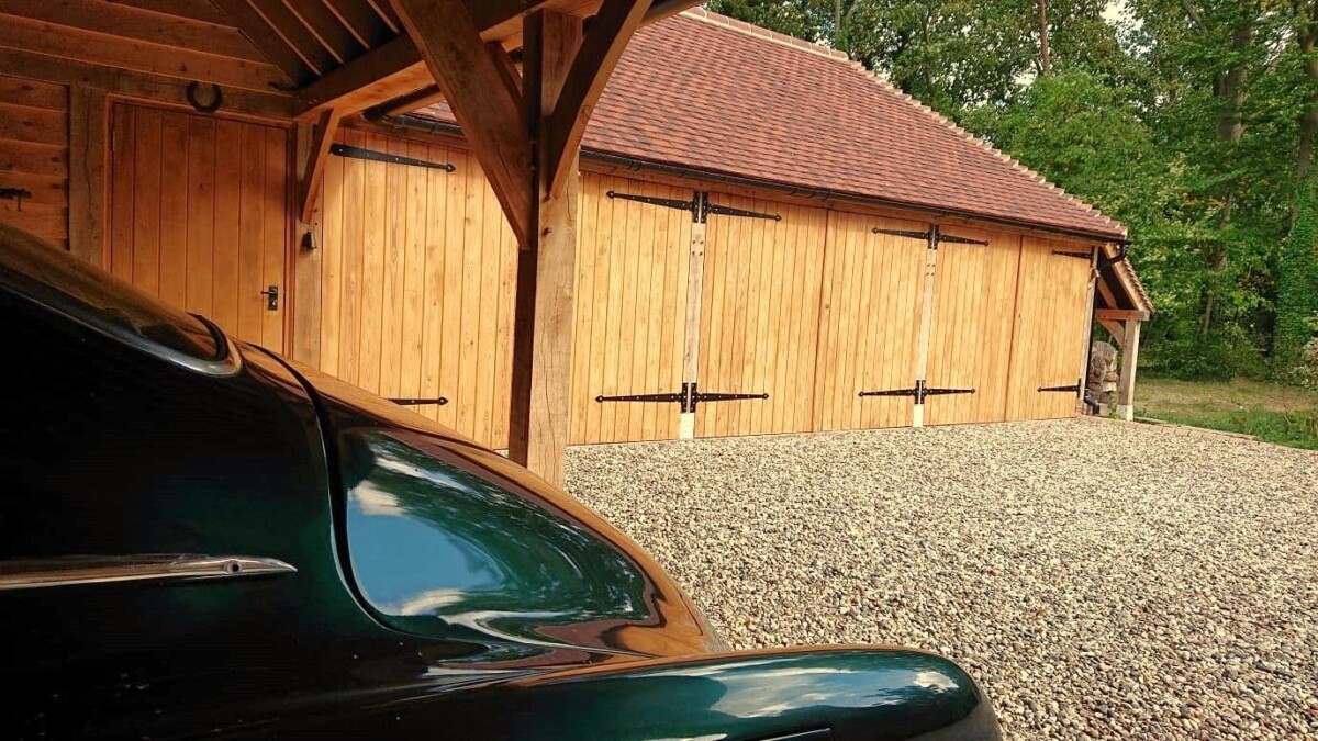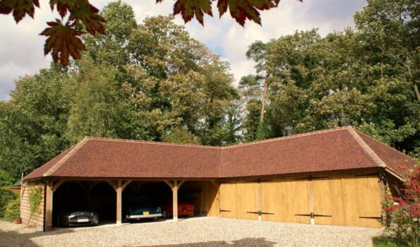 The beauty of L-shaped garages and other L-shaped oak framed outbuildings is that you can maximise a buildings size and footprint without it taking up too much room on an existing plot by slotting into a corner location or a plot where the driveway section is restricted in width. Due to the right angle shape it still gives the ability to have a large driveway and further maximise the available space.