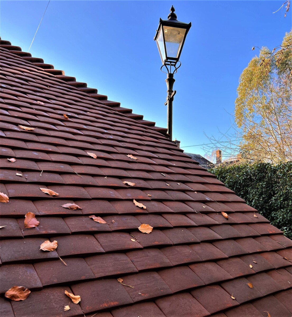 The full hipped roof design was used on this design with handmade clay tiles. At the Oak Designs Company we have found that when getting planning permission for our clients, the full hipped roof design on the oak frame garages is normally one of the favourite choices, by local planning authorities.