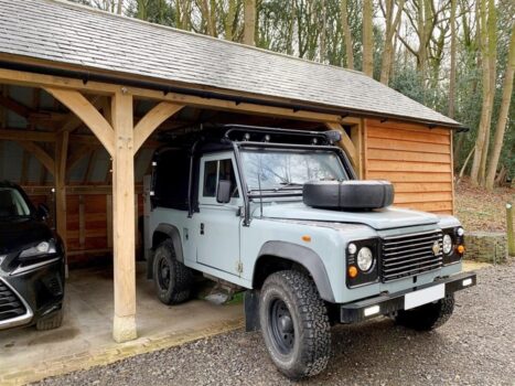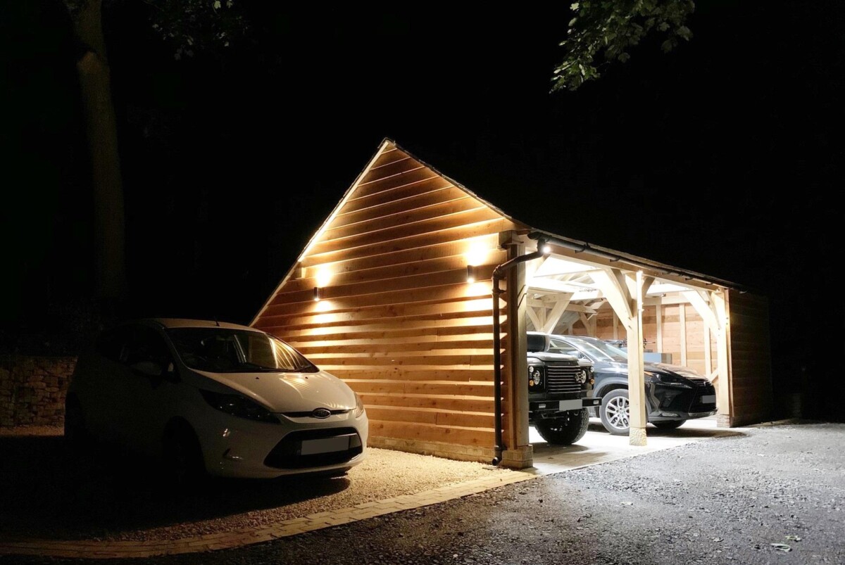 Larch weatherboard was used to clad the garage with an oak frame and oak soleplate. We think our client did an excellent job and finished it off with external down and uplighters as well as internal lighting which looks great at night and those dark winter evenings. Thanks for sending in these photos and hope you continue to enjoy your garage for many years to come!