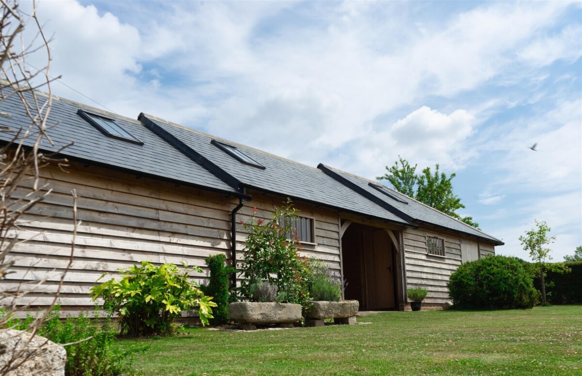 With the slate roof we worked with our clients, combining three different oak frame buildings with three different ridge lines on gable and fully hipped roofs to create a striking unique design. The different side, front and rear access points of the building allow a nice flow through the buildings as well as creating segregated spaces within the combined design.
