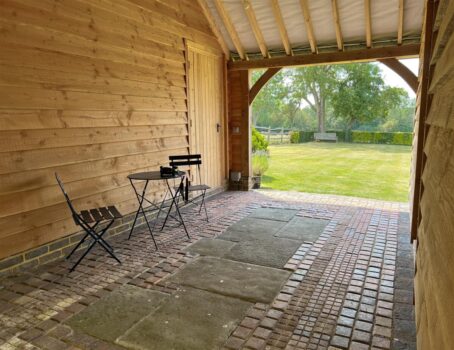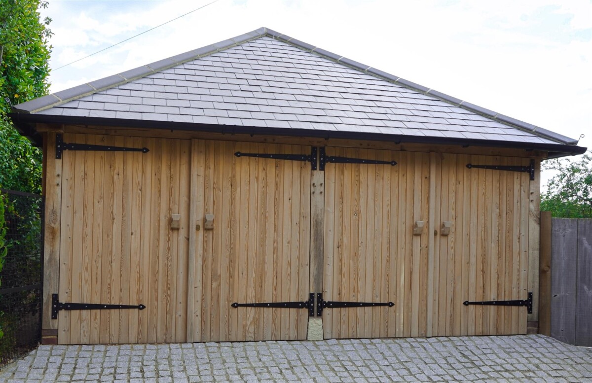This bespoke oak frame building was designed to create a building that incorporates a garage, store room and outbuilding with side, front and middle access on a site with multiple different levels. This highly versatile oak building was built to a spec to give it the ability to be tuned into a habitable spec building in the future. This building has the potential to be turned into a guest suite, air bnb stay, home office, home gym as well as many other possible functions.