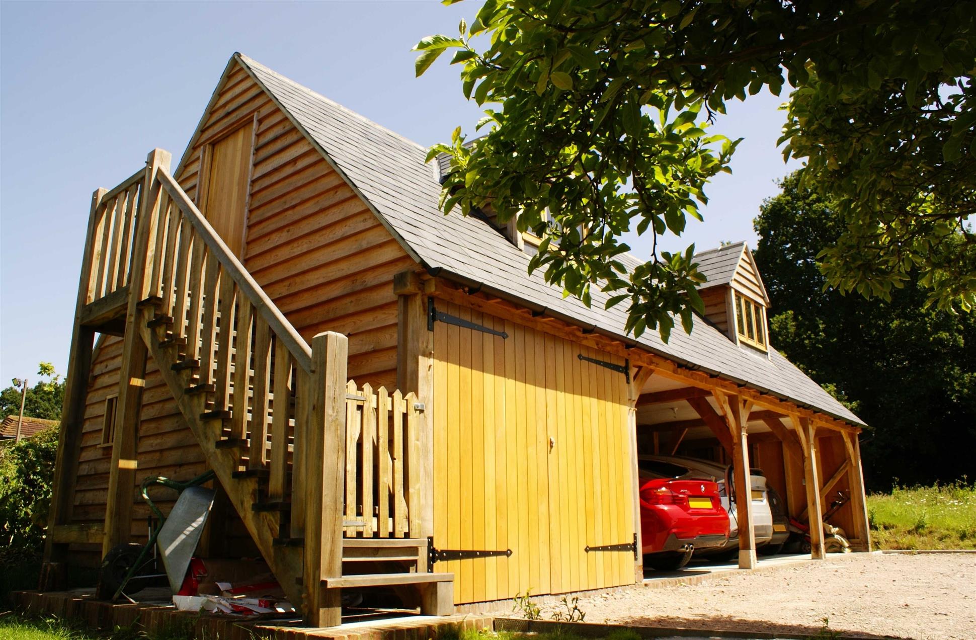 Imagine a garage that not only stores your vehicles but also provides additional living or working space above. Our oak framed garages with a room above offer precisely that. With access via external or internal staircases, the first floor adds valuable square footage to your property. Past clients have transformed this space into studies, home offices, art studios, cinema rooms, guest accommodations with en-suites, children’s play areas, and more. It’s not just about storage; it’s about maximising your property’s potential and adding significant value.