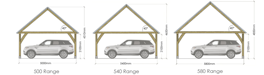 Standard depths are 5m, 5.4m & 5.8m however like all other aspects the Oak Designs buildings can be customised and designed specifically to meet your wants, needs and site requirements.