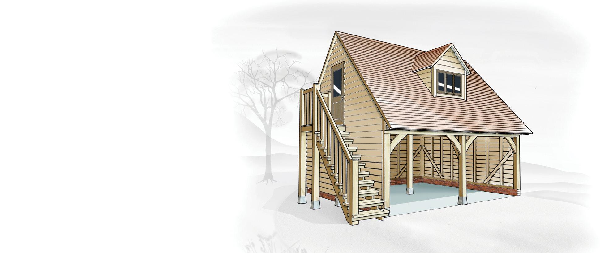 Here we take a look at the Cheltenham garage. This is a 2 bay garage with first-floor space above, offering you plenty of further storage room to utilise, as well as the inclusion of 2 car ports. This offers you a unique garage solution that provides you unparalleled storage space from your own home, as well as a unique area for your home vehicles.