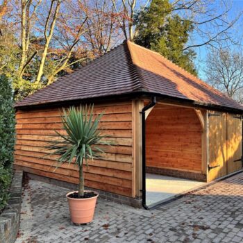 Oak framed garages represent the most popular choice among our clients, combining practical functionality with stunning design elements that complement any home style. Whether designed as a simple single-bay structure or a more complex multiple-bay design with additional storage or living space above, they offer provide robust, long-lasting solutions for modern needs. The strength of oak allows for generous door openings and flexible interior layouts, while the material’s inherent beauty means these structures often become a focal point of the property.